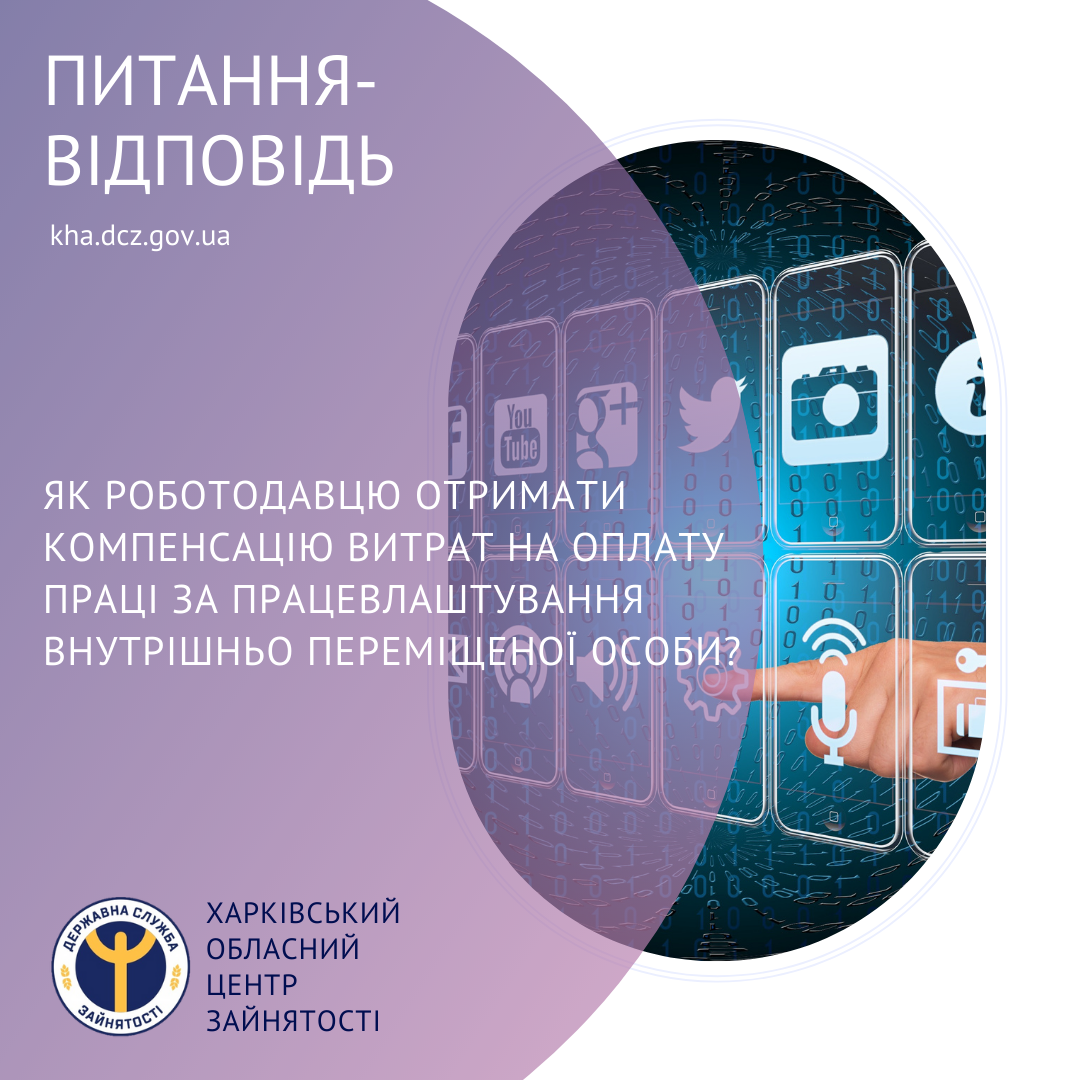 Для отримання компенсації витрат на оплату праці за працевлаштування внутрішньо переміщеної особи роботодавці Харківщини можуть звернутись до центру зайнятості, розташованого за їх місцем знаходження, дистанційно.