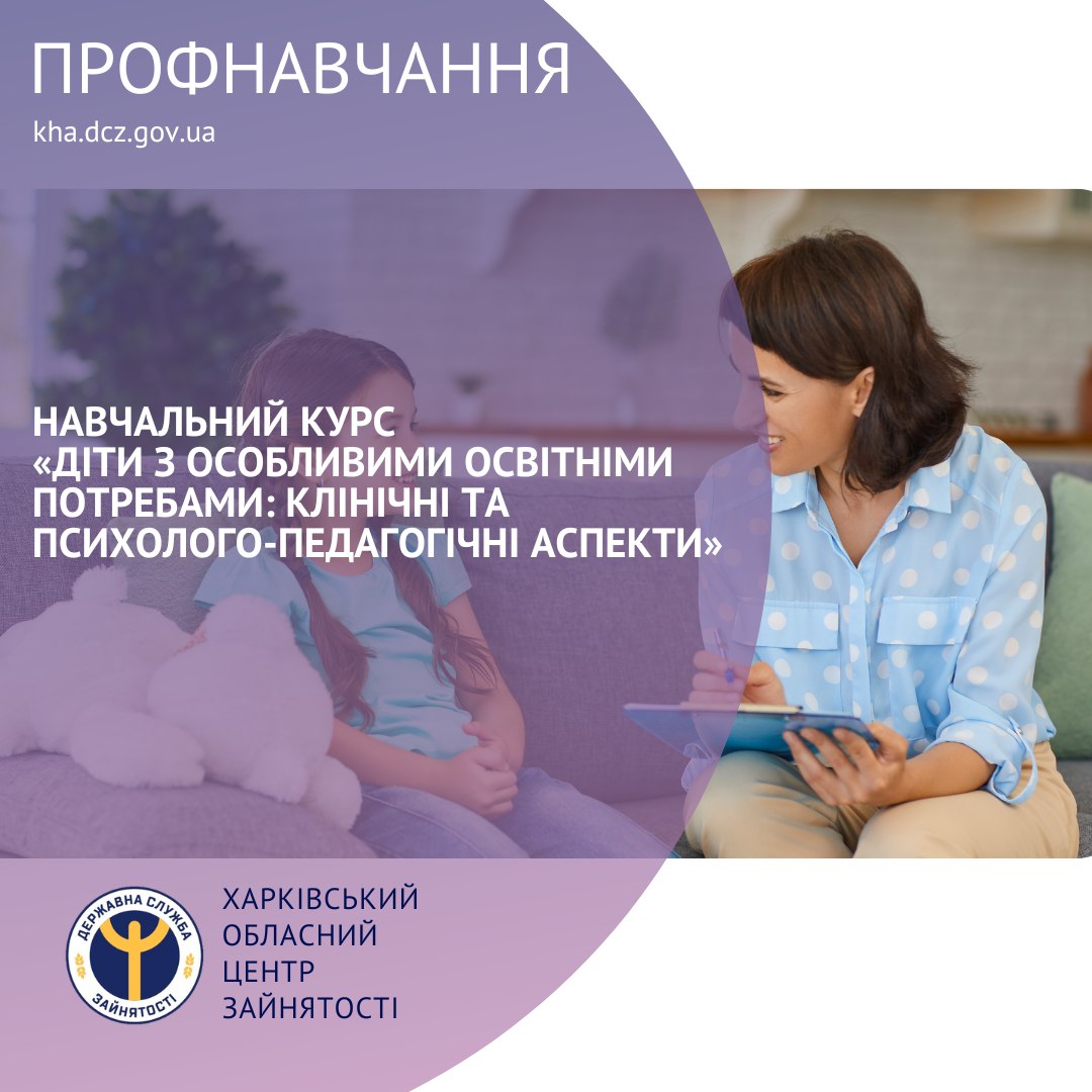 Харківський центр професійно-технічної освіти державної служби зайнятості пропонує навчальний курс за напрямом «Діти з особливими освітніми потребами: клінічні та психолого-педагогічні аспекти».