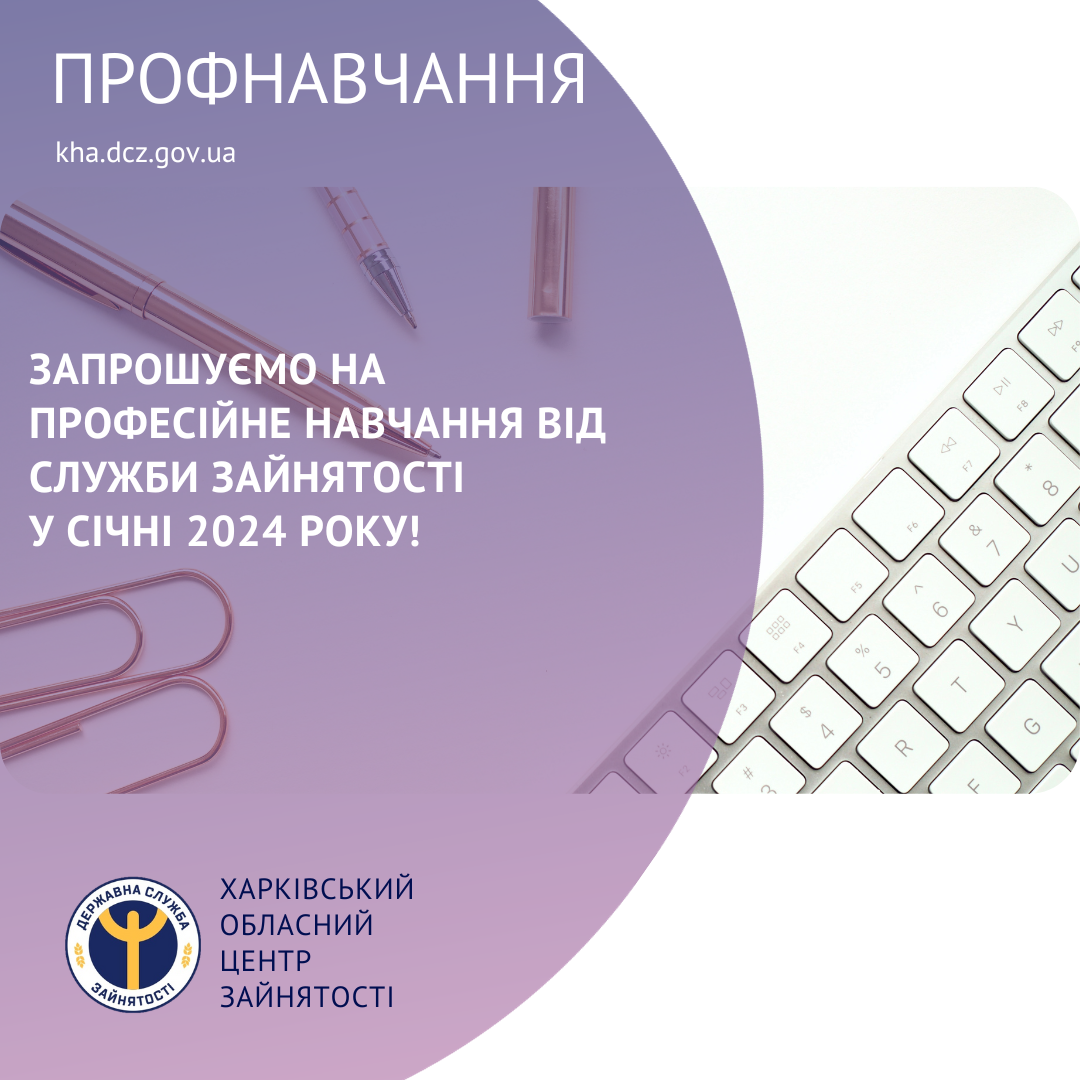 Увага! У січні 2024 року у Харківському центрі професійно-технічної освіти державної служби зайнятості відбудеться посадка навчальних груп за наступними професіями: