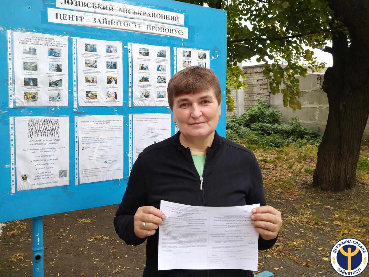 Ольга Тіщенко звернулася до Лозівського міськрайонного центру занятості за сприянням у працевлаштуванні.