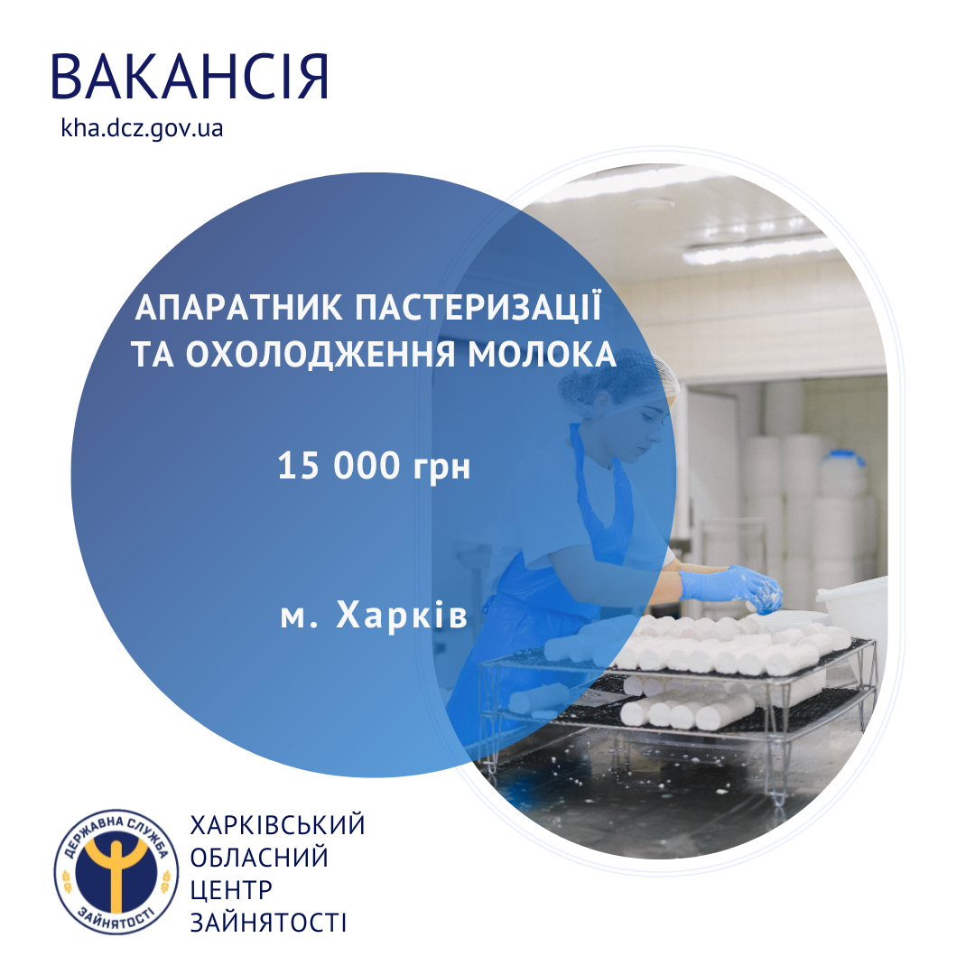 Підприємству у м. Харків потрібен апаратник пастеризації та охолодження молока.