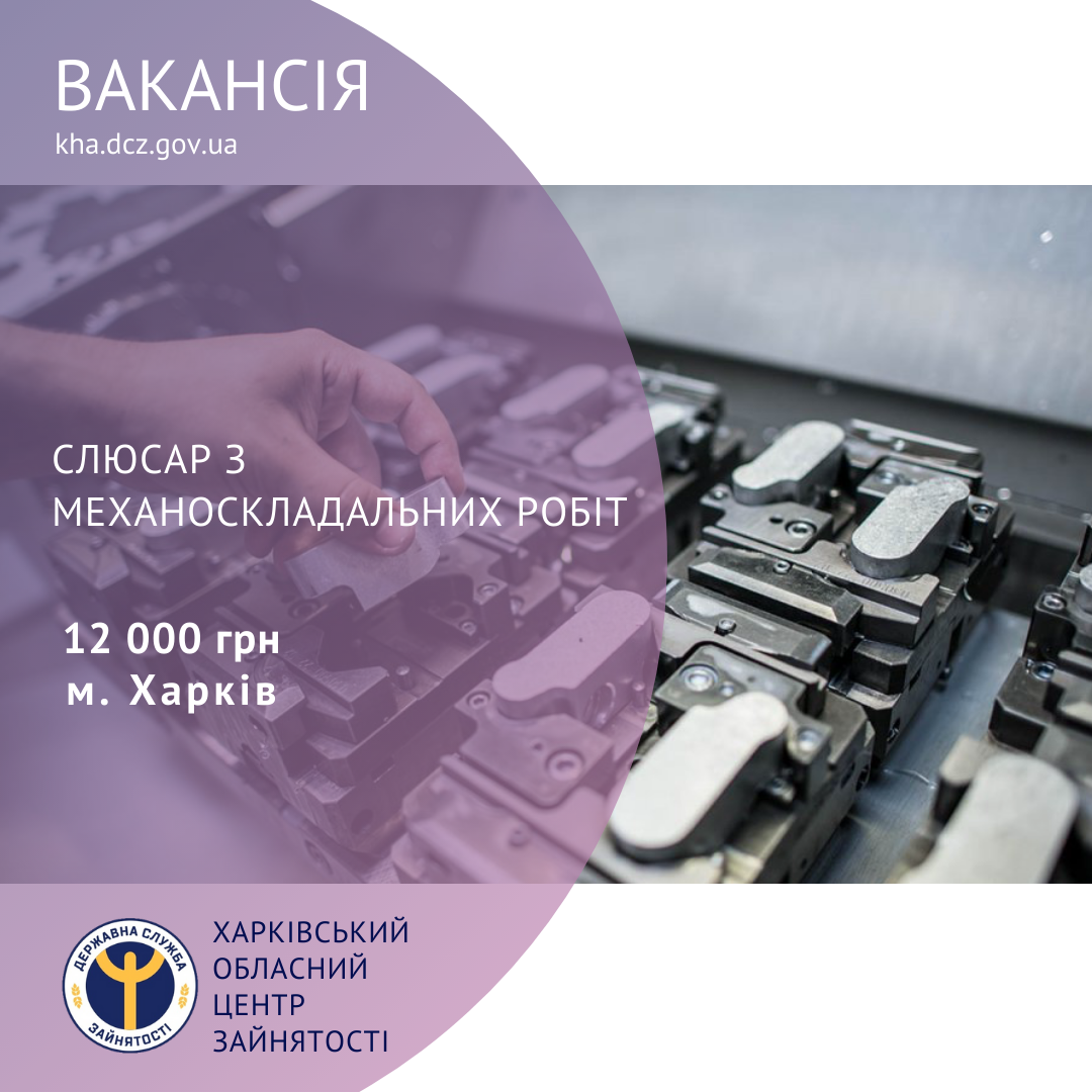 Підприємству в галузі встановлення та монтажу машин і устаткування потрібен слюсар з механоскладальних робіт.