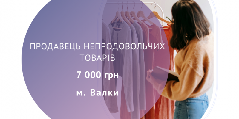 Підприємству у м. Валки потрібен продавець непродовольчих товарів.